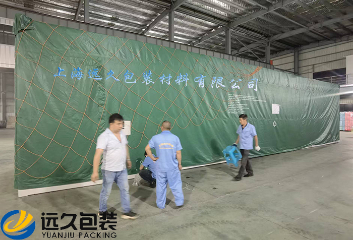 在對大中型出口木箱進行防水包裝時,包裝環境應清潔、干燥、無其他有害物質,木箱包裝的外表面應保證沒有裸露的釘頭或其他尖銳的金屬件,防止在運輸過程中由于顛震和裝卸沖擊導致損傷防水包裝材料的現象。