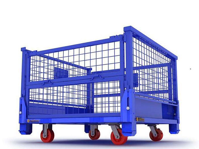 隨著現代工業的迅速發展,對倉儲籠的功能要求也越來越高。將工業倉儲籠底部安裝輪子,倉儲籠之間便可連接,且方便移動,移動時聲音小,折疊后可堆垛、可靠安全而且保護產品免磕碰,工廠內部周轉極其方便。經過改進的腳輪手推移動工業倉儲籠可在車間方便快捷周轉,更可在籠子上裝上牽引,前面附牽引機械,使籠子之間連接起來如一列小火車自由穿梭于倉庫廠房之間。