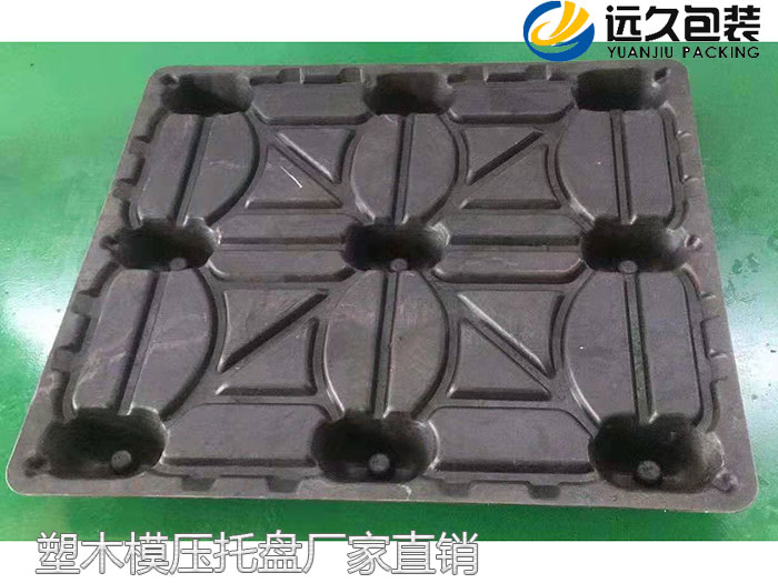 木塑模壓托盤的性能:防潮、防霉、防蛀、無釘、無刺、易清洗、出口衛生可免檢、含水率低于10%,不受天氣影響,經久耐用、可回收再生利用,環保,具有防水性能好,可長期浸泡水中,無膠合成(無甲醛),一次成型(無釘結構構,不會因為釘子露出把包裝物搞壞,200 度高溫融合,800 噸的高壓合成(出口免熏蒸),外形可塑性強(含有塑料成分),使用過程中不會掉粉。